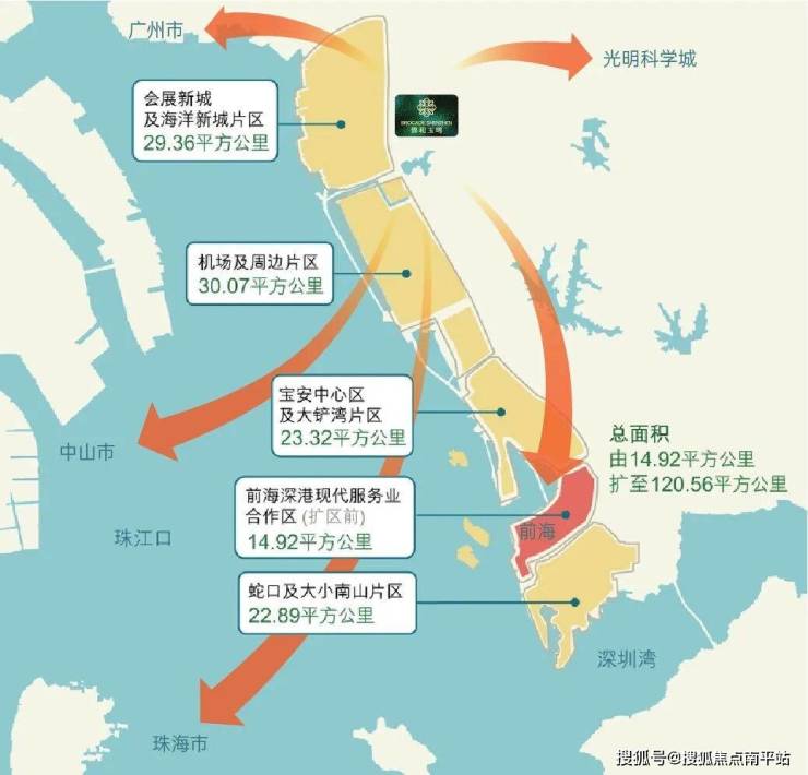 黄金内湾:前海扩容区,融入世界湾区第一站往南,是前海;往北,衔接东莞广州;往西,联动中山珠海;往东,携手光明科学城。根据《前海深港现代服务业合作区总体发展规划》,沙井,已经成为“三城一港”核心辐射区。