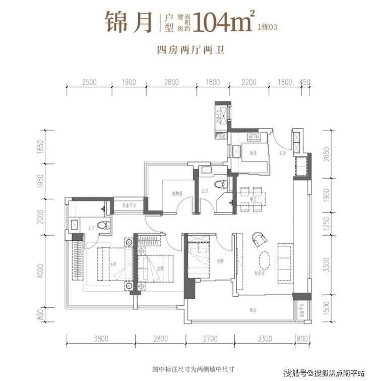 •锦月·建面约104㎡4房2厅2卫:南向四开间,6米阳台引景入室,自此生活融于风景