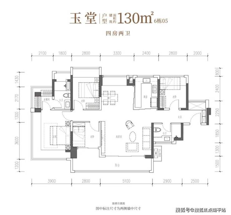 •玉堂·建面约130㎡4房2厅2卫:南向四开间,约14.7米IMAX光幕,尺度自成