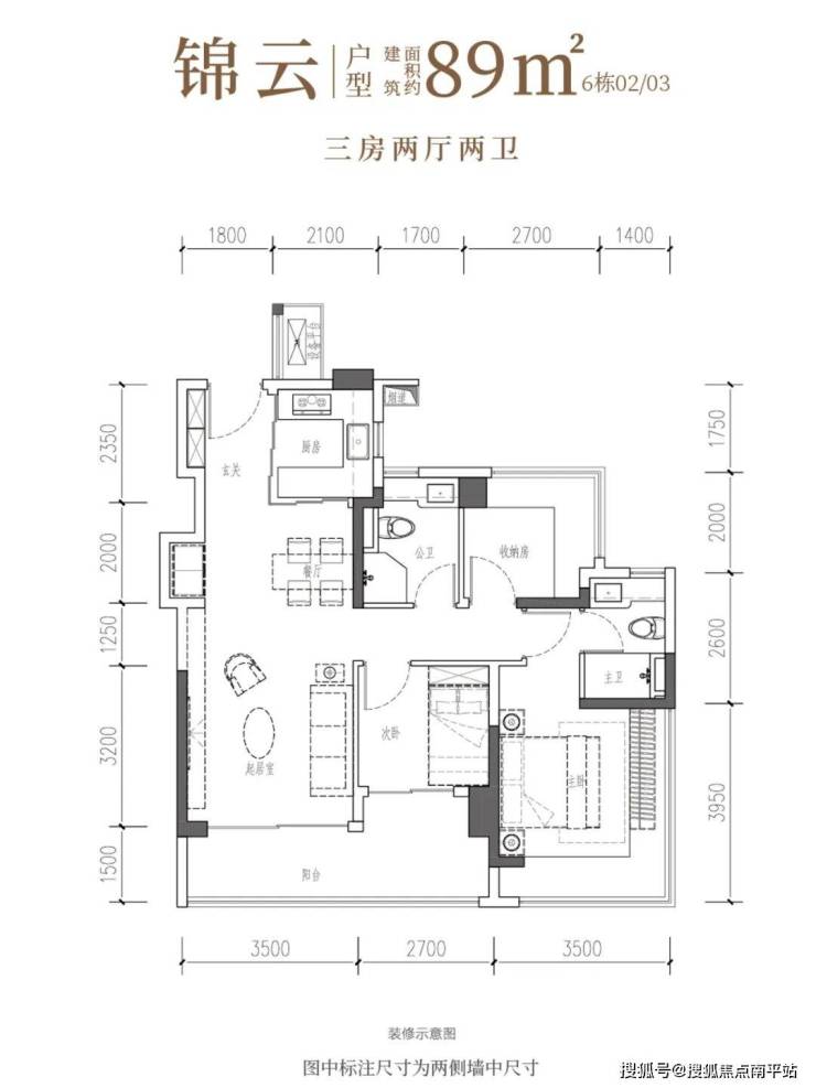 •锦云·建面约89㎡3房2厅2卫:南向阔厅,景致常驻,间间开阔,尺度舒适