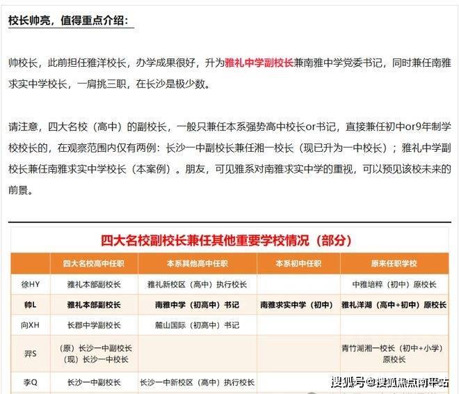 南雅求实中学,前不久公布管理团队,4位校长(书记)同台,长沙教育这20年来第一例。