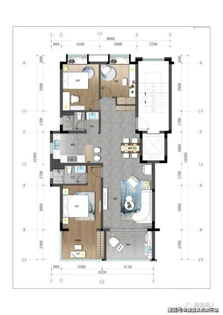标准层(2层3层)建面:122㎡ 三房两厅两卫