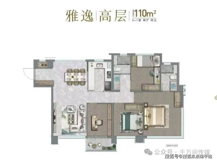 110㎡高层通透四房:层高3.05米,朝东边套,四开间朝南,全屋采光面超30米;主卧转角天幕景观,3房、4房可自由变换,同样拥有双家政空间。