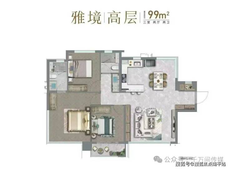 99㎡高层边套:综合使用约92%,层高3.05米,南北通透、四面采光;主卧、餐厅270°全景;玄关入户、LDK+大方厅,加双家政空间。