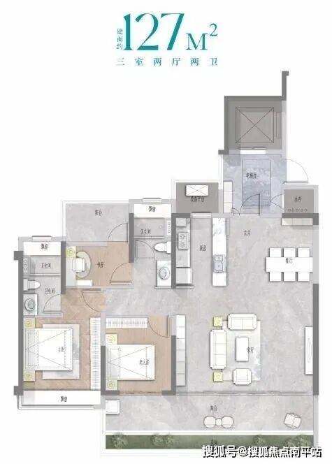 建面约127㎡舒适三房:空间布局合理,兼顾度假与生活