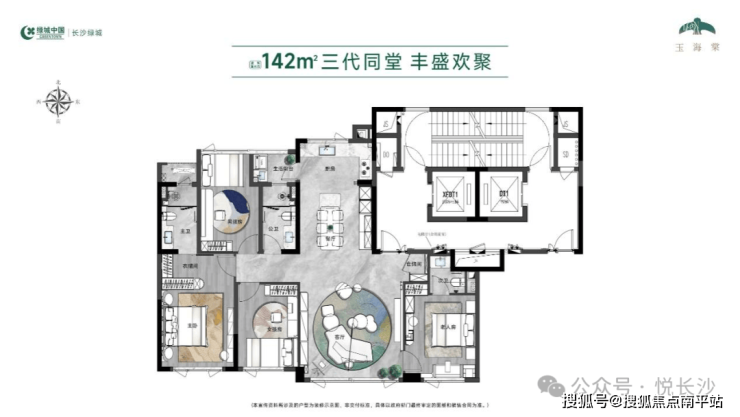 户型方面,建面约142㎡优选户型亮点显著:约15.4米南向四开间引光通透,双主卧套房保障私密与仪式感,可变X空间适配家庭成长需求,提升实用性。2#栋楼下“春知学堂”(以英国威斯利花园为灵感)服务儿童成长,麓山国际洋湖实验学校、医疗配套均近在咫尺。凭借“内外兼修”。