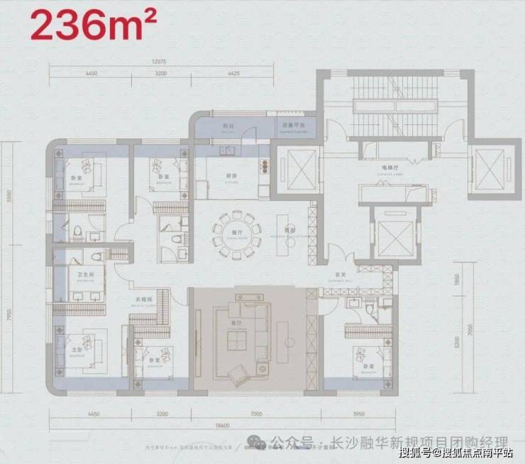 - 玺宸·236㎡:楼王户型,约15㎡私梯门厅,约170米天际视野、28米环幕景观,96㎡城市会客厅,5+X家族式布局,承载世家社交与居住理想。