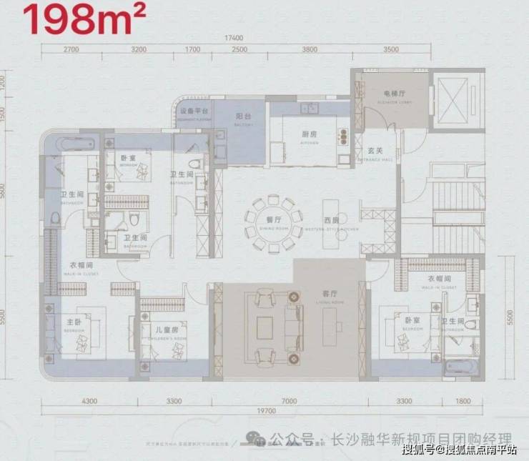 - 玺樾·198㎡:约9㎡私属前厅,4+1三套房设计,约95㎡超大横厅,三代同堂从容有度,空间感拉满。