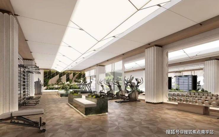 挥汗如雨地锻炼时,一抬头就能欣赏到庭院美景。
