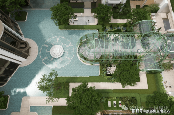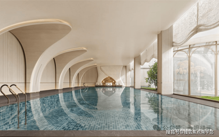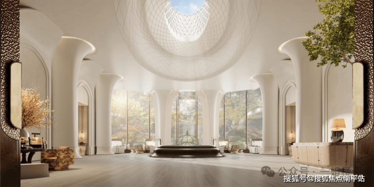 约300㎡的 水晶玻璃穹顶花房, 如同一座悬浮的透明绿洲,将天光云影垂直引入生活。环绕其侧的恒温泳池、女王吧、瑜伽室、SPA馆,让下楼即享星级酒店般的度假体验成为日常。