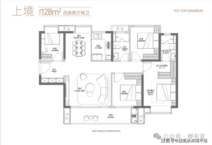 ▫️ 128㎡四房:南北双阳台,主卧套房设计,满足二孩家庭需求