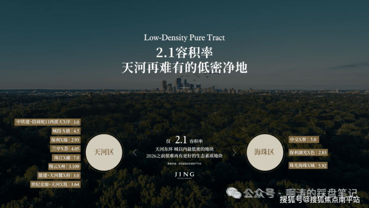 •主城唯一 容积率约2.1 的绝版低密净地、天河核心区难再有的可连片开发无城中村的稀缺净地