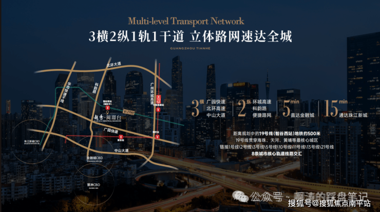 •3横2纵主干道, 速通珠金琶 ,北环高速+广园快速+中山大道/环城高速+科韵路