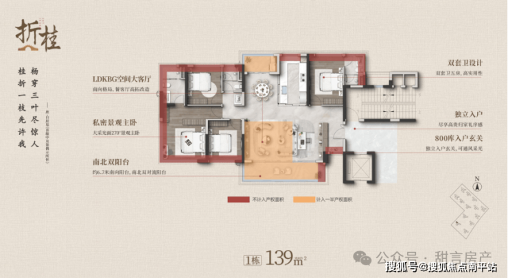139 方: LDKB一空间 |800玄关库 | 南北对流阳台|270°环景飘窗|灵动双套房可四可五房