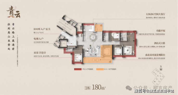 180方: 专梯专户|步入式800玄关库 |约9米全景阳台|女王级衣帽间|灵动双套房