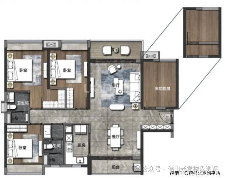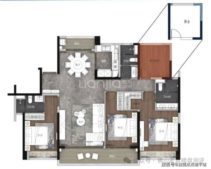 楼王顶豪:建面约 171㎡ 四房两厅三卫,两梯两户专梯专户,私享独立电梯厅,全南向双套房设计,270° 环幕观景阳台,酒店式主卧套房,空间尺度对标市面 200㎡+ 大平层,适配广佛高净值改善客群。