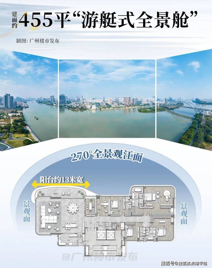 它是整个珠江后航道唯一能同时满足60米亲江、东向望江、270°全景观江的江景大平层!