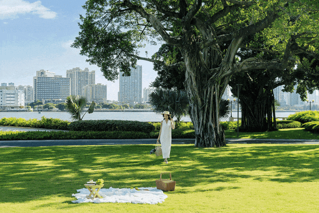 而更关键的是,从下楼到江边,经过的是私家花园。你可以在此漫步、露营,相当于把珠江纳入小区后花园。