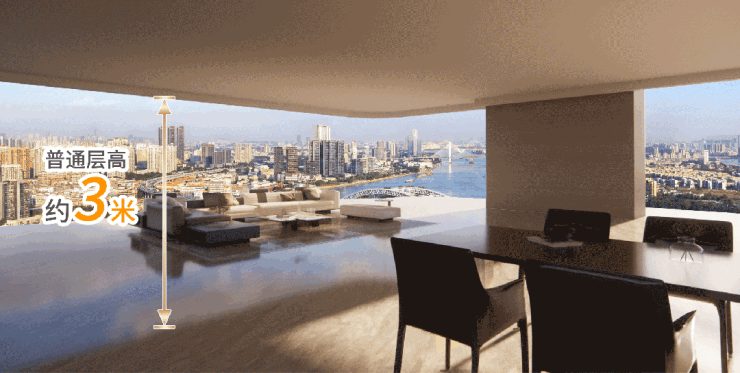 这样的层高,带来的是截然不同的生活状态,采光视野更开阔,观江体验也比别人多了一重,心境也更阔达。