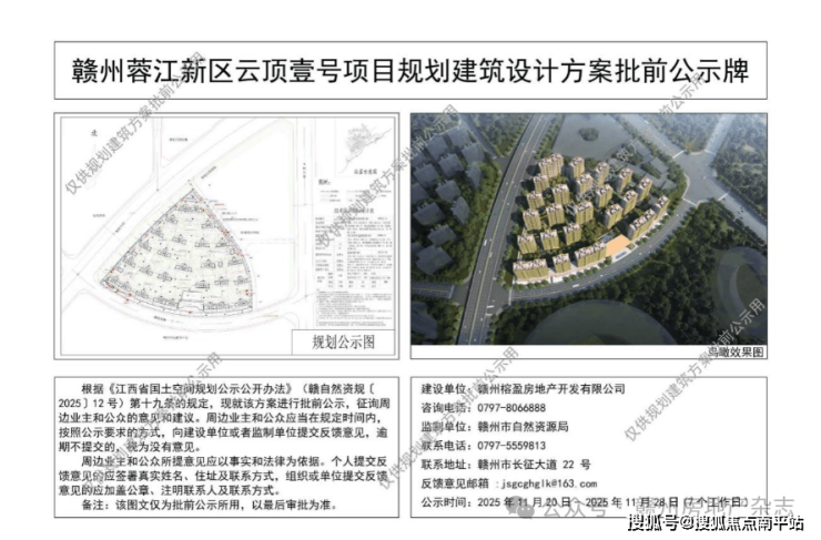 赣州蓉江新区云顶壹号项目规划建筑方案批前公示,项目位于蓉江新城赣南大道东南侧、潇雨东路北侧,建设单位为赣州榕盈房地产开发有限公司,用地性质为居住用地(含二类城镇住宅、城战社区服务设施用地),用地面积60483.9平方米(90.7亩)。本次规划建筑方案有23栋住宅,分别是15栋17层住宅,8栋16层住宅,总建筑面积192794.04平方米。