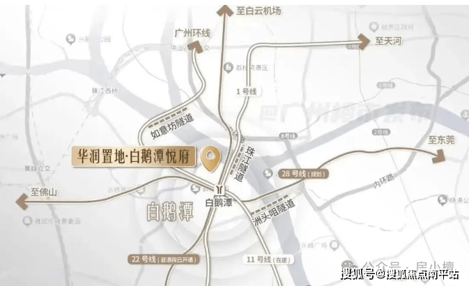 项目距离1号线白鹅潭TOD(芳村站)约400米,未来将有4条地铁交汇,包括1号线、11号线、22号线和28号线。