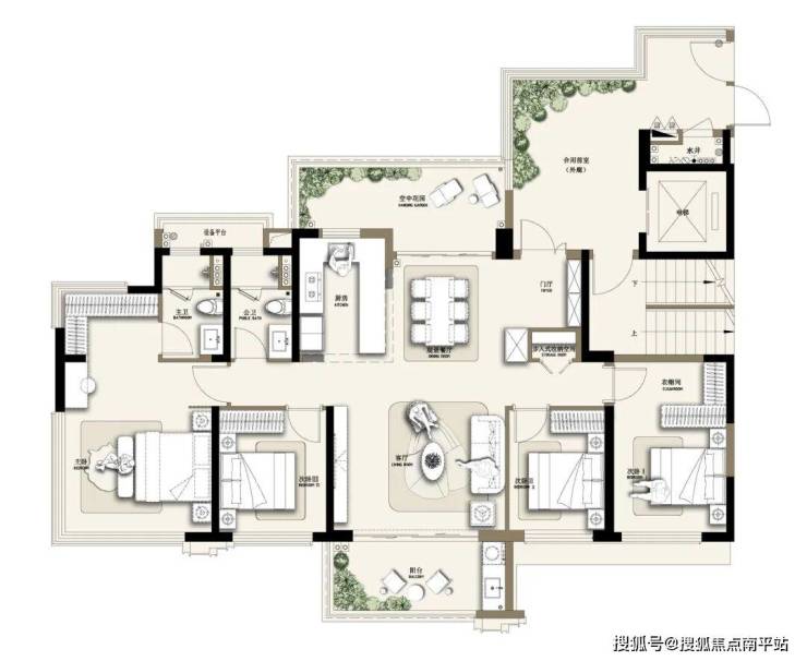 • 179㎡四房:三主卧套房+南北双庭院,尺度感拉满
