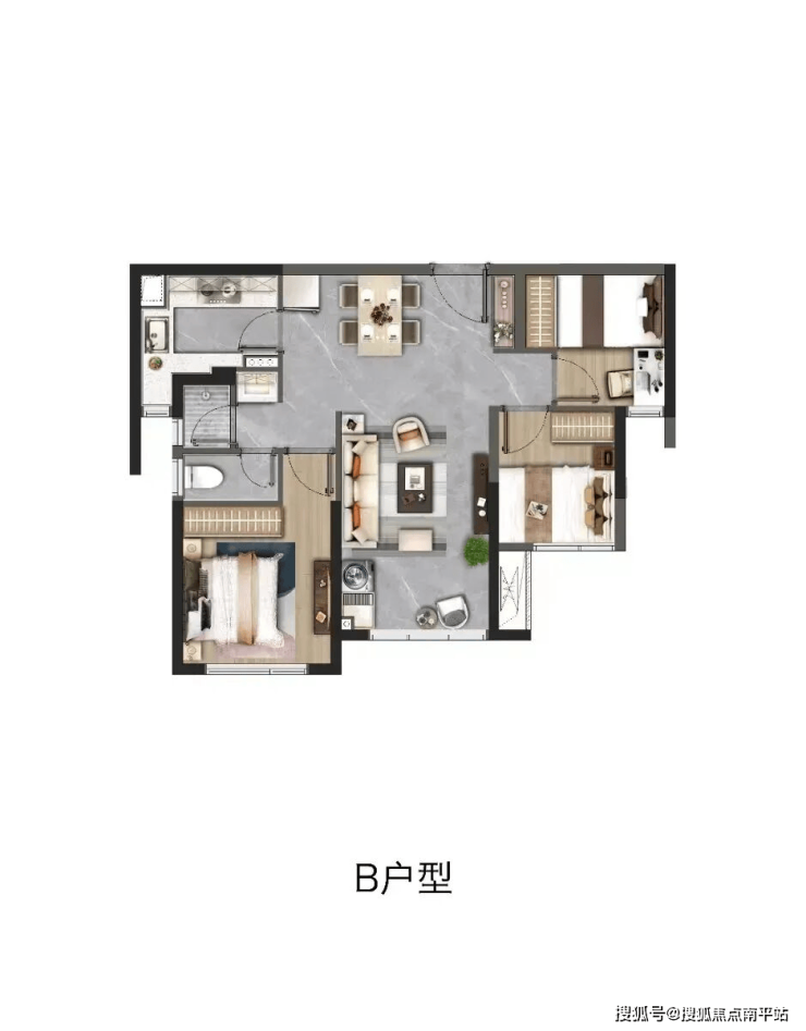 三开间朝南,餐客厅一体化,客厅外接观景阳台,卫生间干湿三分离,完全独立互不干扰