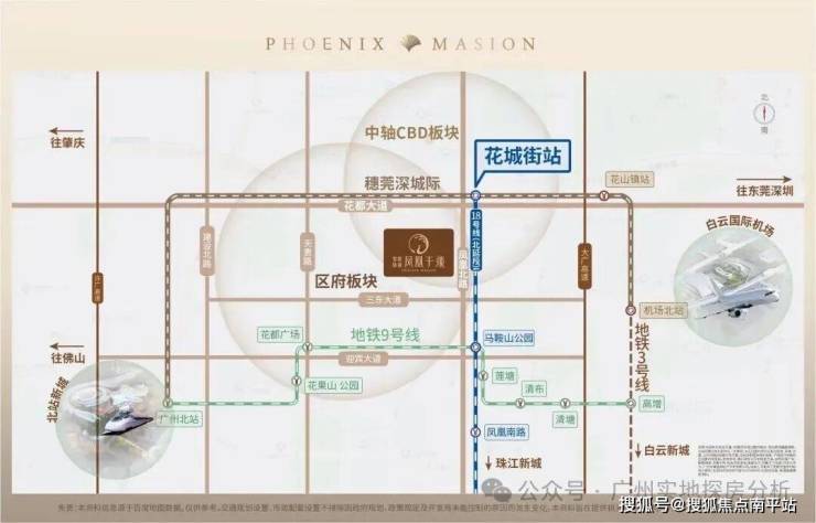 项目距离地铁18号线和穗莞深城际花城街站直线距离仅约800米,4个站到白云新城,8个站到珠江新城。