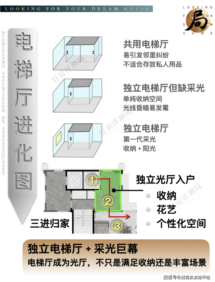 独立的光厅,形成了三进式的归家动线(光厅-玄关-厅堂),让你从容完成从社会角色到家庭角色的心境过滤。这原本是别墅的特权。