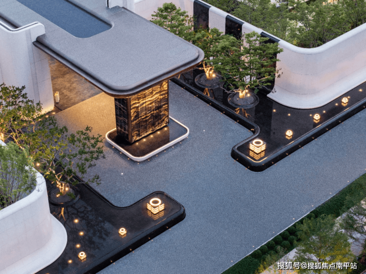 环抱式景墙+酒店式落客+宇宙黑金照壁