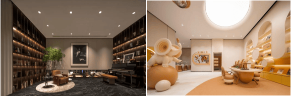 硚口城建文澜序从业主最真实的场景与痛点出发,将其打造为涵盖全龄段休闲、社交、生活需求的六大主题架空层泛会所,目前,1号楼与2号楼的架空层主题空间已实景呈现,精心打造了满足圈层社交的商务会客厅,以及为小业主们量身定制的四点半学堂与方舟书吧。