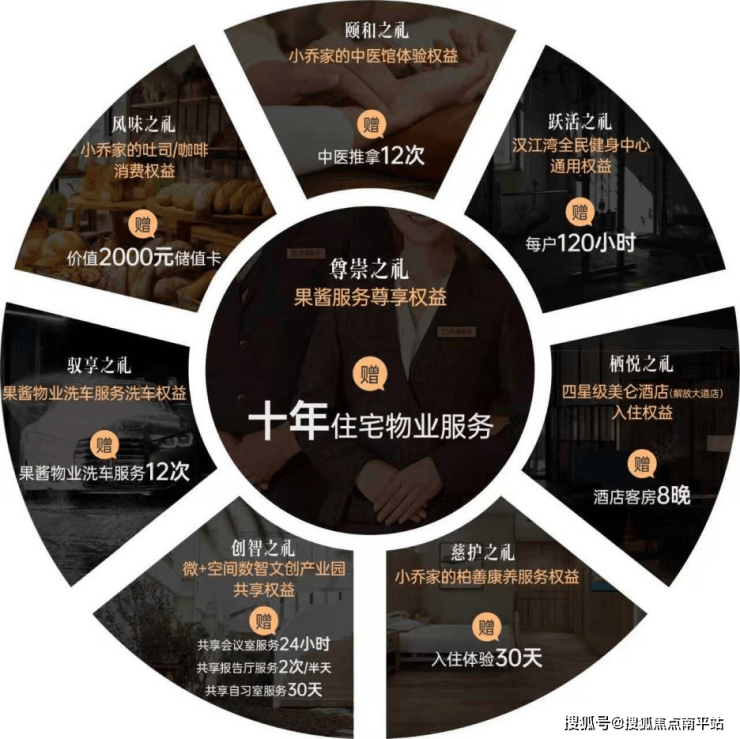 而作为“小乔家”生态体系的重磅献礼,硚口城建文澜序首开即为业主启动黑金权益卡,其中,最重磅的权益,是一项足以震动武汉市场的承诺:首开即赠送十年住宅物业服务!更是硚口城建对未来十年无忧生活的一份郑重契约。除此之外,“黑金卡”更整合了涵盖健康管理、高阶出行、星级餐饮、酒店入住等全维度的尊崇礼遇。