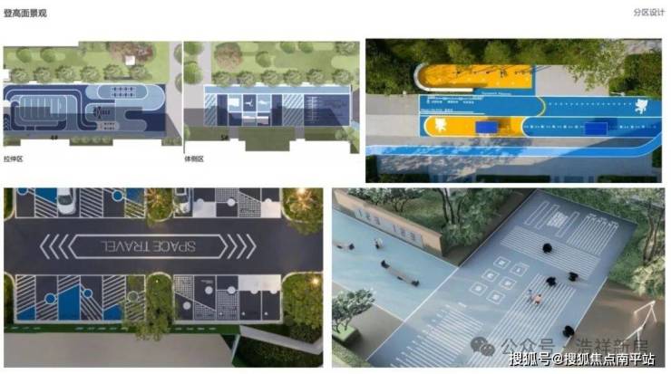 整个小区设置了彩色灯光塑胶跑步环线,在1号楼和3号楼南侧还设置了健身区和体测区。地块西侧围墙处还设置了两块塑胶羽毛球场地。