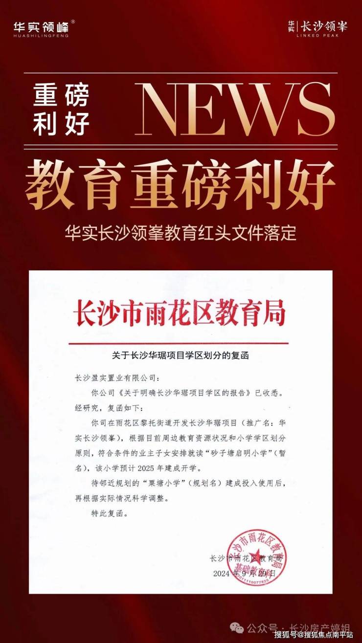 项目自建幼儿园,近期,雨花区教育局发布红头文件官宣:项目已划入砂子塘启明小学学区(暂名),预计2025年建成开学。待邻近规划的“栗塘小学”(规划名)建成投入使用后,再根据实际情况科学调整。片区内拥有枫树山明昇小学、长郡双语雨花中学、长沙市一中(新华都中学)、华益中学等知名学府环绕。