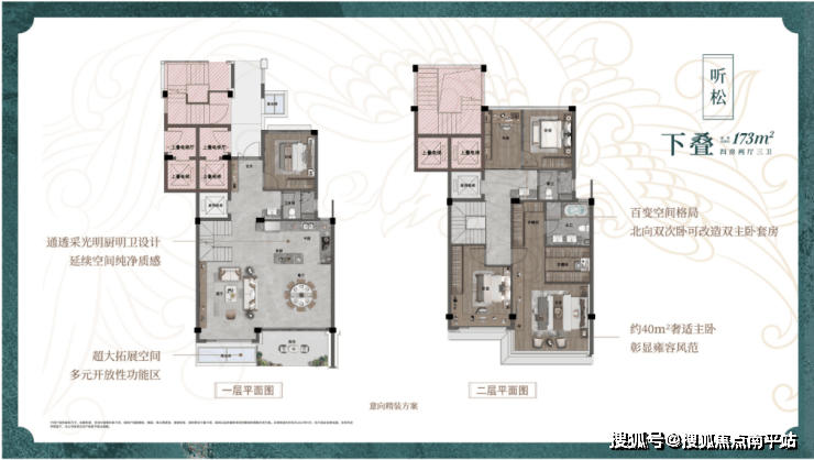 建面约173㎡的下叠,户户赠送庭院,超大扩展空间。