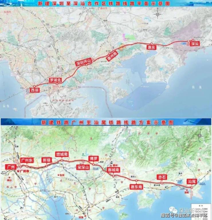广汕高铁(时速约350km/h)<建设中>交汇于深汕站<建设中>预计2023年通车。