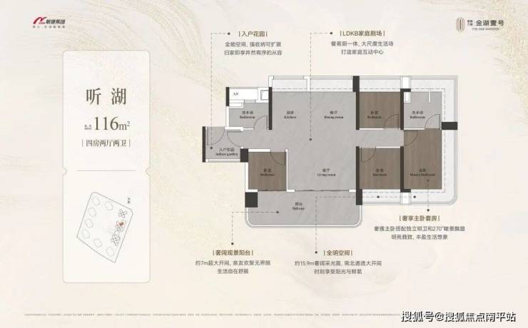 奢享主卧套房,搭配独立明卫和270°瞰景飘窗