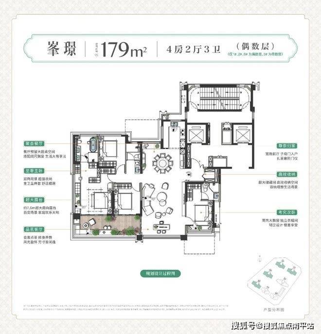 建面约179㎡户型以其四房+双露台+五件套主卫的配置,展现出对多代共居生活场景的深度洞察, 堪称项目中的“顶配王牌"。