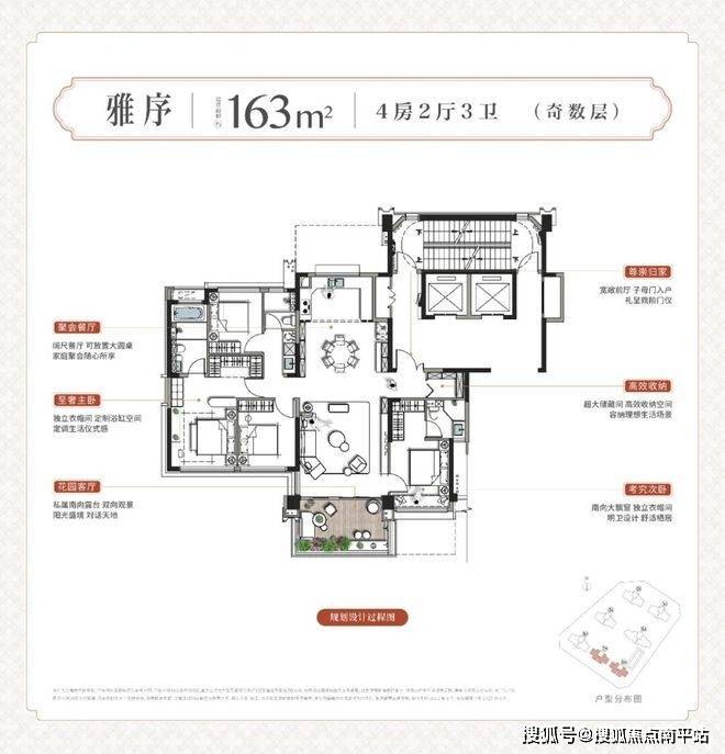 海阅的产品设计基于大量客研反馈,精准回应精英家庭真实生活场景,建面约163-218㎡户型,全面考量多孩家庭、居家办公、圈层宴请等需求,强调空间灵活性与实用性。