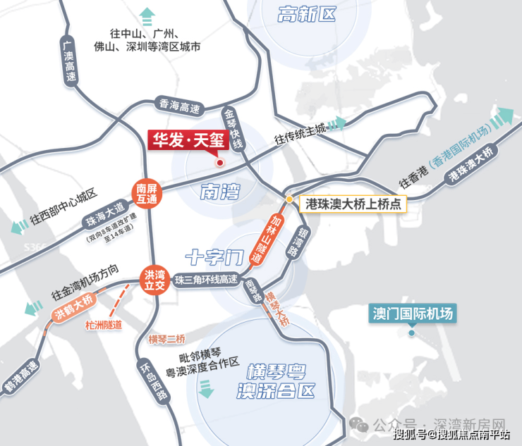 珠海交通大动脉, 金琴快线-南湾大道串联高新区、十字门与横琴,实现全城快速通勤;凭借 “轨道+大桥+口岸” 的立体路网, 贯通珠海辐射湾区 。