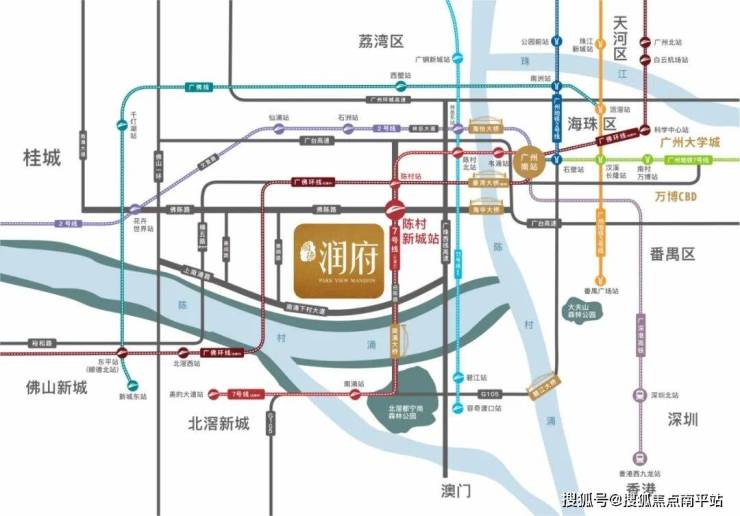 华润置地·顺德润府,坐落于三龙湾陈村新城滨江地段,邻近广州地铁7号线顺德段双站点(官宣年底通车),占据着广佛同城的超级流量入口。