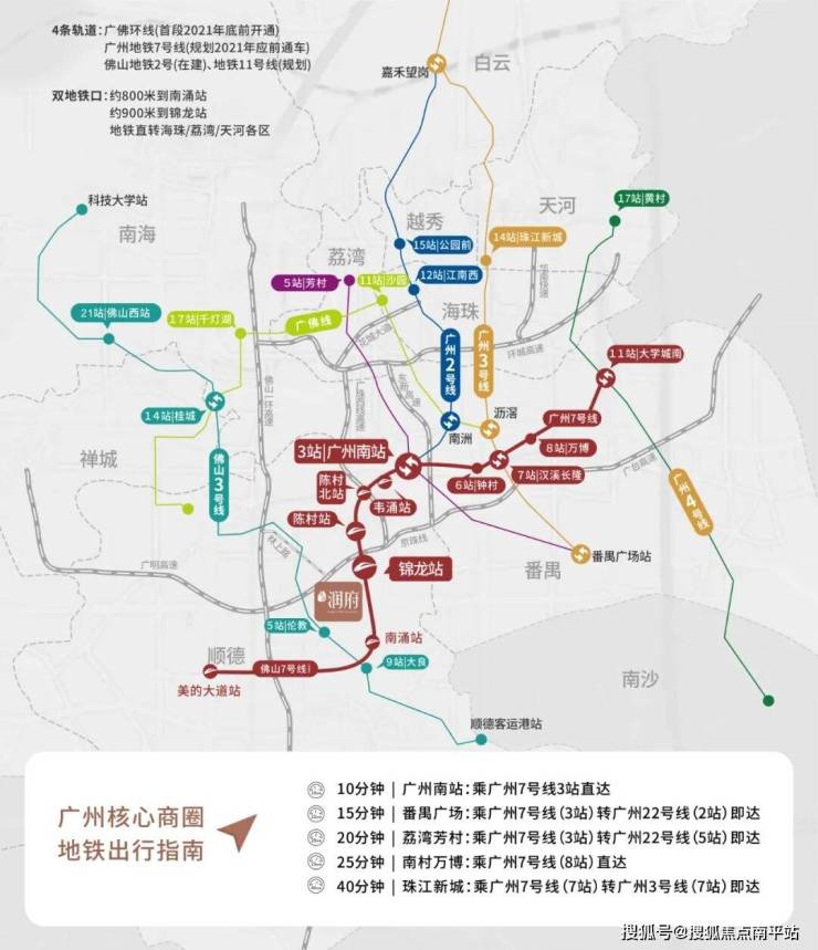 广州地铁7号线顺德段(已通车)五个站点落在陈村,分别是大洲站(韦涌站)、陈村北站、陈村站、陈村新城站(锦龙站)、南涌站!还有佛山地铁3三号线(即将通车)、地铁2号线(已通车)、地铁11号线(规划)和广佛环线(即将通车)陆续开通。从项目出发,2站直抵广州南站,4站到到大学城,5站到琶洲,14站珠江新城!广佛同城生活,触手可及。