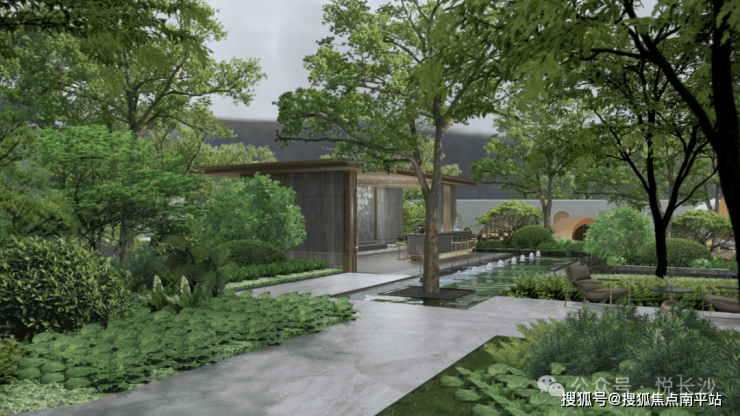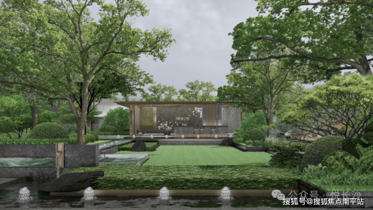 而颐德公馆|湘江序规划约9000㎡园林, 示范区展示园林整体面积的2/3,绿地率达48.81%,市场zui高标准之一!
