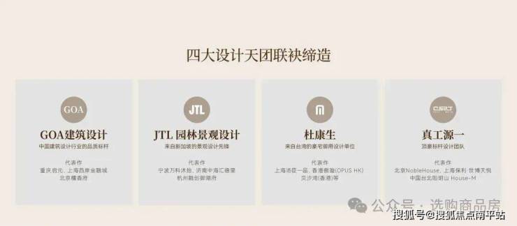 携手GOA、JTL、杜康生、真工源一4大国际设计机构,交融全球经验,打造智慧三星、「四化」与生态融合的高奢住宅壹号作品。