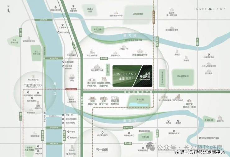 主二环城央核心地段,福元路超级中轴,一步市府滨江&五一商圈;长沙唯一“一江两河”环绕的超级宜居区,极萃城市顶阶资源;是繁华中心与高端人居的聚首。
