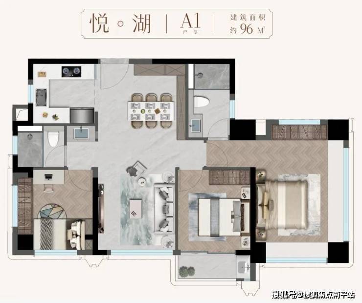 96平3房2卫户型,类边套三面采光;南向约12.8米四开间, 所有房间均朝南布置;入户玄关转角处设置了玄关柜;奢阔酒店式主卧,使用面积约23平,累计约8.5米三面飘窗; 全屋综合使用率高达86%,相当于市面110平大三房的空间感。售楼处电话:400-159-8559 接通后输入8666(24小时电话)