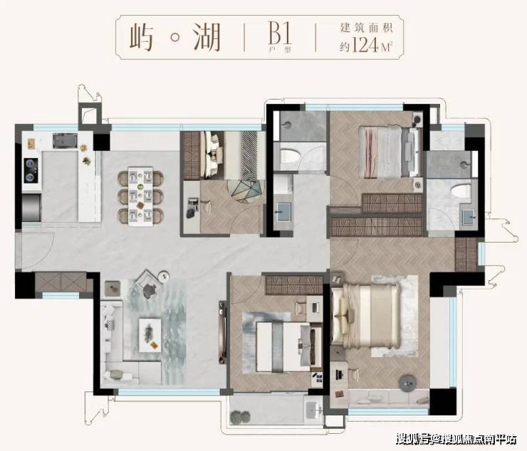 建发港务·宸启瑞湖首期地块为东地块的瑞湖公馆, 此次首推96平三房及124平四房户型。