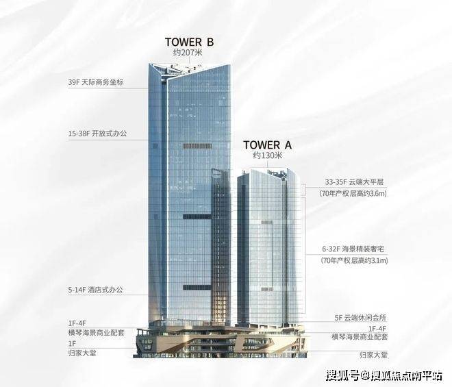 ·包含天际住宅、云端会客厅、甲级写字楼及商业等多元业态的地标综合体
