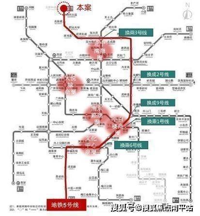 轨道交通方面,项目距离已经运营的地铁5号线北辰科技园北站约500米,步行5分钟即达。地铁5号线堪称“换乘王”,可与地铁1、2、3、6、9号线实现换乘,半小时可达天津站、小白楼CBD,50分钟左右能抵滨海国际机场,出行便利。