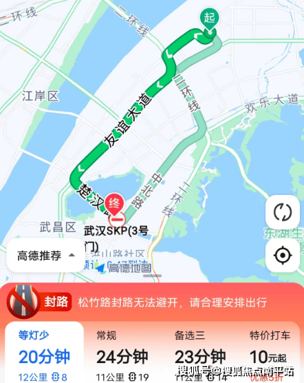 就算到武汉天地,或者即将开业的SKP,按照导航显示,开车出行也就是十几二十分钟的事儿。(约9-12公里)
